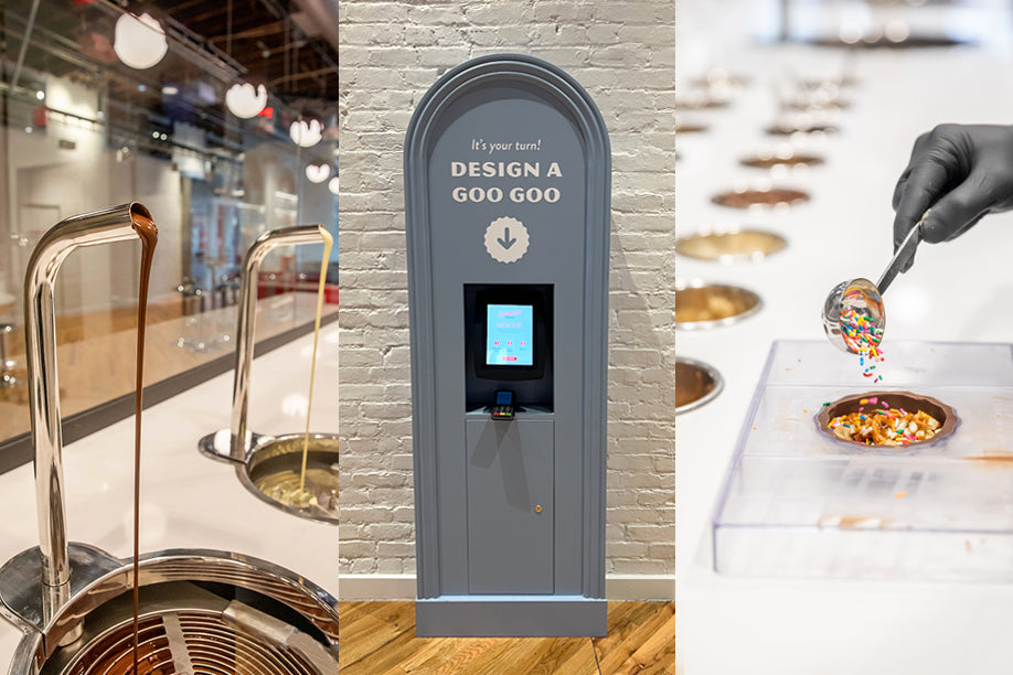In addition to our Chocolate Experiences, we also have four Design Your Own kiosks where folks can walk up and customize their own candy bar! After using the fun digital panel with step-by-step instructions, our chocolatiers then build the candy in front of your eyes at the Chocolate Bar.
